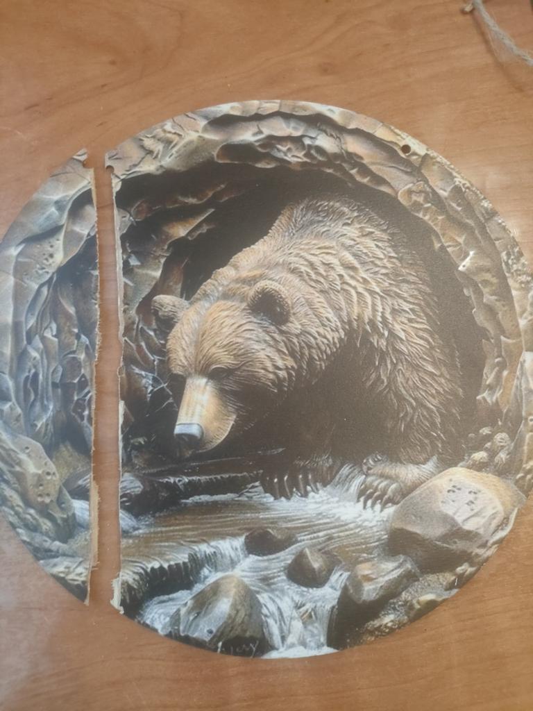 Cała drewniana sklejka z rysunkiem niedźwiedzia, bardziej blada niż na wystawie aukcji! Tak czy inaczej wielkie dzięki 🌥️