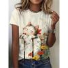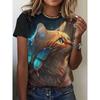 T-shirt z nadrukiem ryby i kota z okrągłym dekoltem, casualowy t-shirt z krótkim rękawem na wiosnę i lato, odzież damska