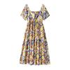 Letnia sukienka damska plus size, temperamentna, luźna, zakrywająca ciało, z kwadratowym dekoltem, modna, w kwiaty, z krótkim rękawem