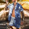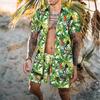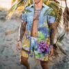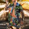 Dodając tropikalnego akcentu, zestaw hawajskiej koszuli dla mężczyzn ma żywy kwiatowy nadruk z roślinami i elastyczny sznurek w talii, który zapewnia łatwe i wygodne noszenie.