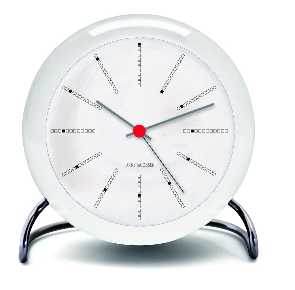 ARNE JACOBSEN Budzik stołowy 11 cm Skandynawski design Retro Alarm Dźwięk BANKERS 43675 Biały (Cichy projekt)