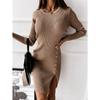 Damskie Nowe Jesienno-Zimowe Sukienki w Jednolitym Kolorze z Długim Rękawem, z Wysokim Dekoltem, Ozdobione Guzikami, z Rozcięciem
