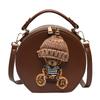 Damska Vintage Skórzana Torba na Ramię Uroczy Niedźwiedź Mała Okrągła Crossbody Torba Projektanta Kreskówkowe Wzory Luksusowa Nowa