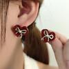 Eleganckie kolczyki zwisające w kolorze czerwonego wina w kształcie serca dla kobiet, emaliowane kryształki olejowe, mini koraliki, kolczyki z kokardą, modny, słodki prezent biżuteryjny