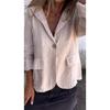 GMXIA Wiosna Rozmiar Plus Luźny Jednolity Kolor Zapinana na Guziki Kołnierz Garniturowy Bawełna Len Mała Marynarka Garniturowa Kobieta