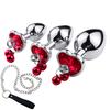 Crystal Heart Buttplug Stainless Steel Leash Chain Anal Plug Bells Pendant Prostate Massager SM Erotic Sex Toys For Women Men