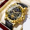 Męski Modny Luminous Zegarek Kwarcowy Trzy Oczy Chronograf Faza Księżyca Wodoodporny Wielofunkcyjny Modny Zegarek z Kołem Zamachowym