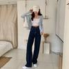 2024 Koreańskie jeansy z wysokim stanem i szerokimi nogawkami w kolorze ciemnoniebieskim dla kobiet - wczesnojesienne uniwersalne proste spodnie