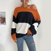 Moda Vintage Elegancka Odzież Codzienna Jesień Damska Kolizja Kolorów Okrągły Dekolt Dzianina Wewnątrz Sweter Damski