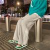 Damskie spodnie sportowe w paski w stylu koreańskim - luźne, sięgające do ziemi, w jednolitym kolorze, na wiosnę i jesień