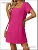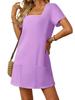Uzupełnij swoją garderobę o tę wszechstronną sukienkę mini, która bez wysiłku łączy wygodę i styl. Ta sukienka w kształcie litery A ma krótki rękaw i kwadratowy kołnierzyk, a jej długość sięga elegancko nad kolano, zapewniając szykowny wygląd.