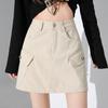 Khaki jeansowa spódnica A-line z wysokim stanem - Retro styl amerykański dla kobiet