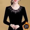 Damski pluszowy top z czarnej koronki i siateczki na jesień 2025 - Slim fit i modny