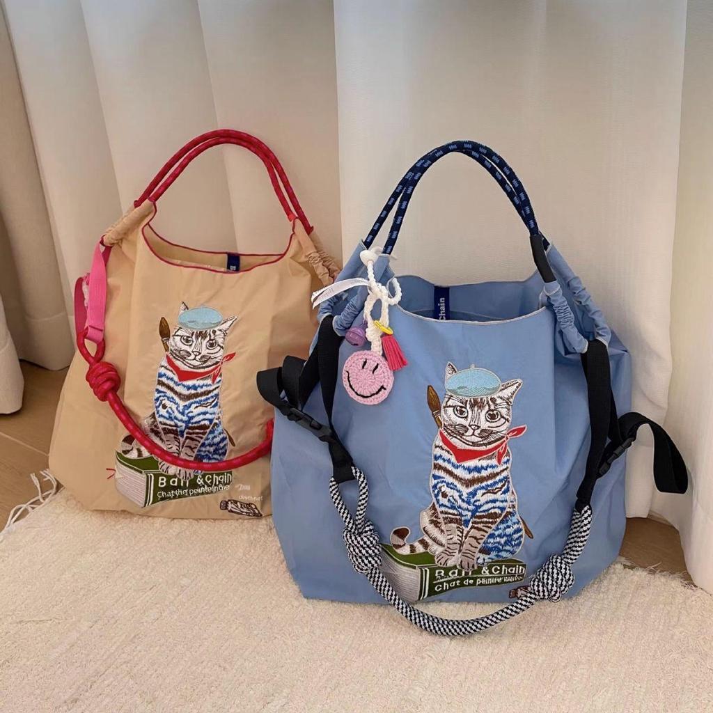 „Japoński Malarz Kot Haftowana Duża Pojemność Nylonowa Ekologiczna Torba Tote”