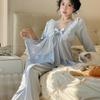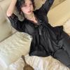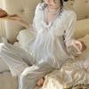 "Letni zestaw piżamowy z lodowego jedwabiu": Damski top z rękawem 3/4 i spodnie z satynową koronką, styl księżniczki"