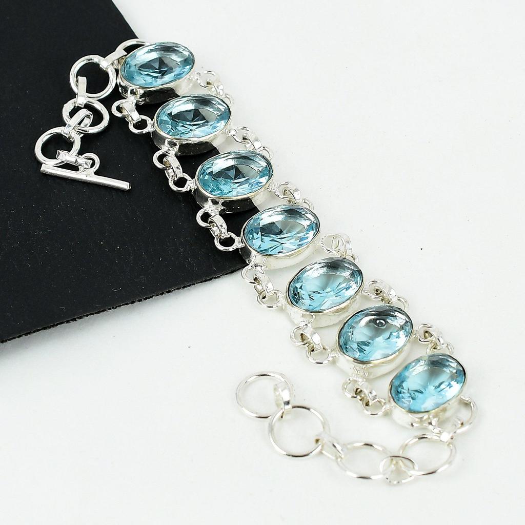 Bransoletka ze szwajcarskiego niebieskiego topazu, ręcznie robiona, ze srebra próby 925, bransoletka ze szwajcarskiego niebieskiego topazu dla żony, bransoletka unisex, prezent z waty