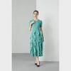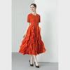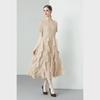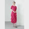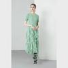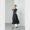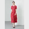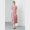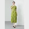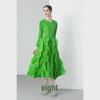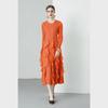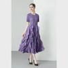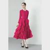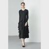 Miyake 2024 Plisowana sukienka z falbaną: Okrągły dekolt, Długie i krótkie rękawy, Wysoki stan, Wąski krój, Elegancki design