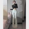 Damskie białe dżinsy z wysokim stanem i rozszerzanymi nogawkami - Plus Size Spodnie do ziemi