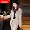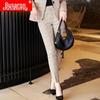 Ulepsz swoją profesjonalną garderobę dzięki naszemu profesjonalnemu garniturowi damskiemu z długim rękawem, zaprojektowanemu na sezon jesienno-zimowy. Wykonany w całości z wysokiej jakości poliestru, ten kombinezon łączy w sobie styl i wygodę, zapewniając ciepło i styl w chłodniejsze dni. Zestaw składa się z dopasowanej marynarki z długim rękawem oraz formalnych spodni, łącząc ponadczasową elegancję z nowoczesnym krojem. Ten garnitur, idealny do biura lub na oficjalne okazje, jest uniwersalnym dodatkiem do każdej garderoby, zapewniając wyrafinowany wygląd, który jest zarówno praktyczny, jak i szykowny.