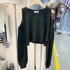 Damska koszulka z odkrytymi ramionami, okrągłym dekoltem i długim rękawem na jesień i zimę, luźna, gładka, z wycięciami, casualowa, bazowa, koreańska odzież damska