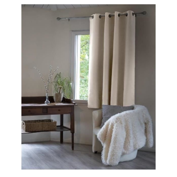 Rideau opacifiant - Inuit - 140 x 180 cm - Thermique - Beige clair - 8 œillets inox