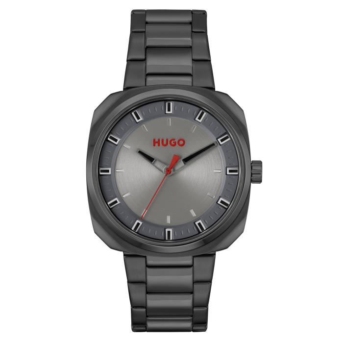 Montre carrée HUGO pour homme - Noir - Quartz - Bracelet en métal