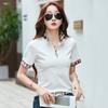 Letnia damska koszula polo z krótkim rękawem i klapami w kratę
