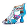 Johnature Ręcznie robione sandały damskie na wysokim obcasie z prawdziwej skóry, plecione, w stylu bohemy, ażurowe