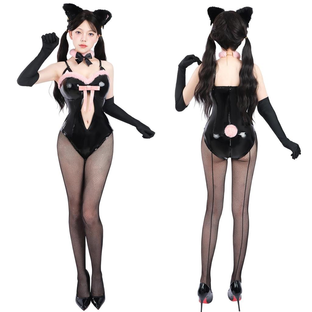 Bunny Girl Cosplay Large Size Bunny Suit Black x Pink Cat Girl Cosplay Costume High Leg Halloween Costume Event Photo Session x Pink Cat Girl [Kamizu