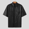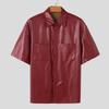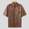 INCERUN Męskie klapki kołnierzyk krótki rękaw zapinane na guziki PU skórzane topy koszule