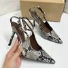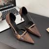 Damski But na Wysokim Obcasie Brązowy Wzór Węża Cienki Dzióbek Szpilka Walentynki Wieczorowa Impreza Szpiczasty Nosek Wzór Węża Klamra