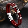 Nowa bransoletka ze stali nierdzewnej ze skóry Nordic Viking Series Dwuwarstwowa tkana męska bransoletka ze skóry