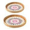 2 szt. Ręcznie robiona taca rattanowa Kolorowa muszla Talerz na owoce Domowa taca do przechowywania na stolik kawowy Chleb