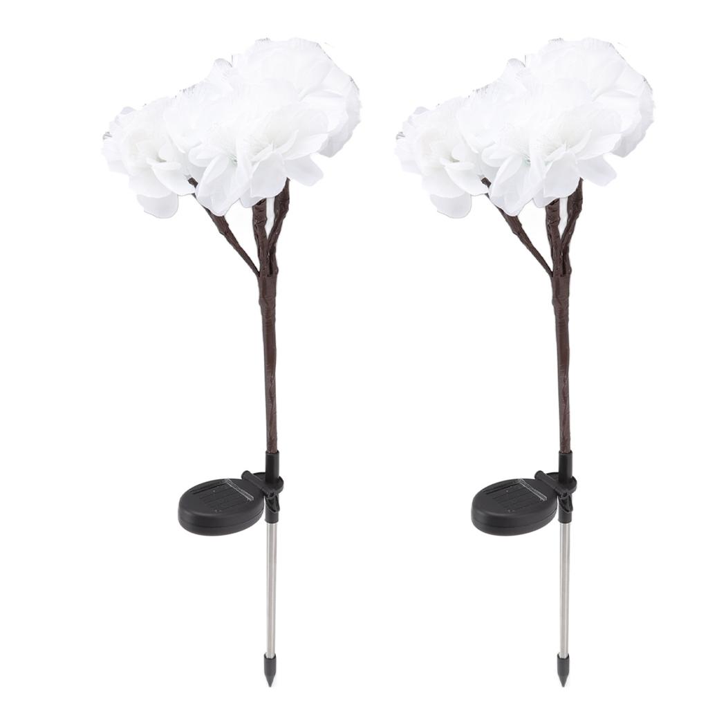 2pcs Camellia Lights Solar Waterproof Outdoor Decorative Fairy Flower Lights for Garden White
