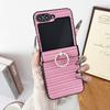 Skórzane etui składane Slim 3-częściowe w jednolitym kolorze w paski dla Samsunga Galaxy Z Flip6 Flip5 Flip4 Flip3 z uchwytem na pierścień, twarde PC, odporne na wstrząsy, matowe etui na telefon