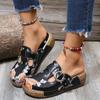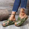2025 Lato Nowe Grube Dno Płaskie Sandały Etniczne Cukierkowe Kolory Damskie Plażowe Kapcie Na Palcach Nadruk Tłoczone Retro Sandały