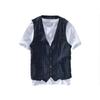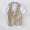Męska letnia lniana kamizelka bez rękawów z dekoltem w serek codzienna cienka