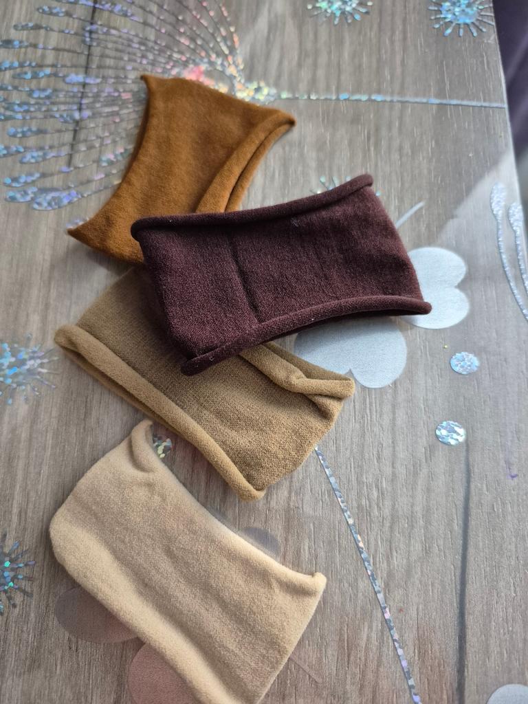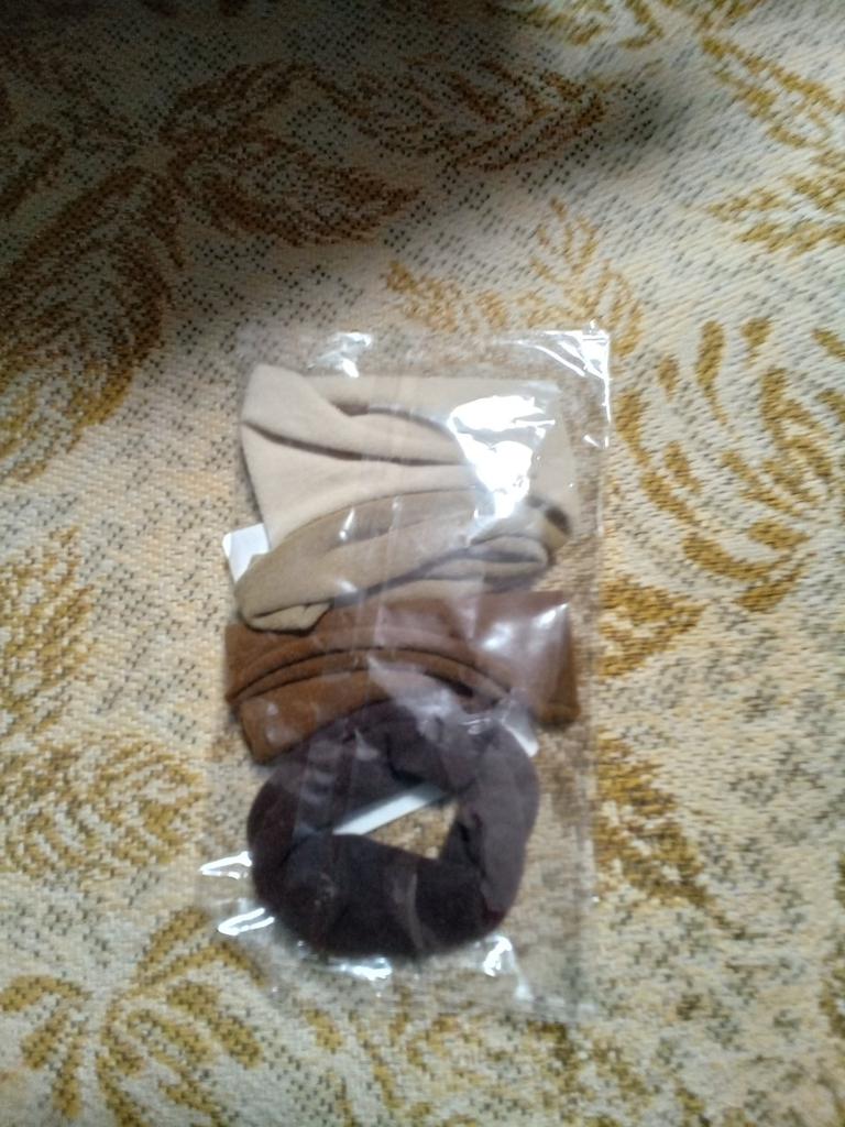 Gumki do włosów materiałowe, w zestawie cztery sztuki, do włosów pasują, nie są bardzo duże.