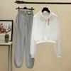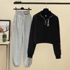 Jesienny Garnitur Damski Nowa Wersja Koreańska Moda Krótka Drukowana Bluza na Zamek Błyskawiczny Casualowe Spodnie Dresowe Zestaw Dwuczęściowy
