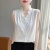 Temperament Commuter Profesjonalna Satynowa Koszula Nowa Damska Koszulka Kamizelka Bez Rękawów Luźna Kołnierzyk Polo Biały Top