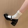 Love Ball~ 2024 Spring New Round Head Thick Heel French Mary Jane Shoes Patent Leather High Heel Black Single Shoes Women