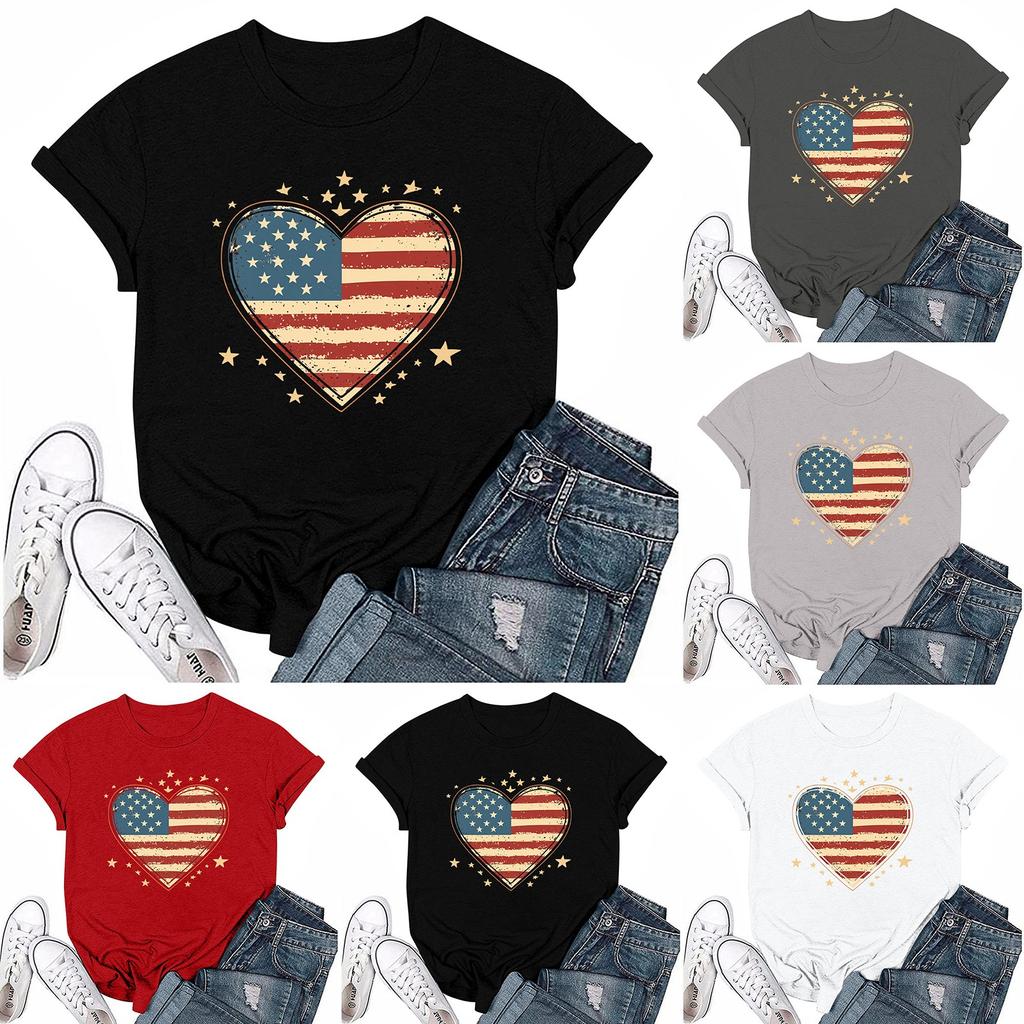 Damska Codzienna Okrągły Dekolt T-shirt z Nadrukiem na Dzień Niepodległości Krótki Rękaw Top z Literami