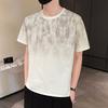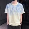 Letnia męska luźna koszula z krótkim rękawem, top z okrągłym dekoltem, kwiecista, rękaw pięć ósmych, koszula z krótkim rękawem