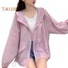Damska odzież przeciwsłoneczna z kapturem, ściągaczem, długim rękawem, płaszcz letni z kieszeniami i ozdobą Odzież chroniąca przed słońcem