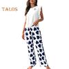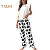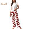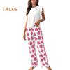 Damski Satynowy Zestaw Piżamowy Z Falbankami Top na Ramiączkach i Spodnie z Szerokimi Nogawkami Zestaw Casualowy 2-częściowy Strój Domowy Zestaw Lounge