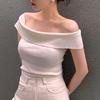 Lato Nowy Temperament Mały Seksowny Dekolt Jedna Linia Odsłaniający Ramię Wyszczuplający Sweter Top Kobieta