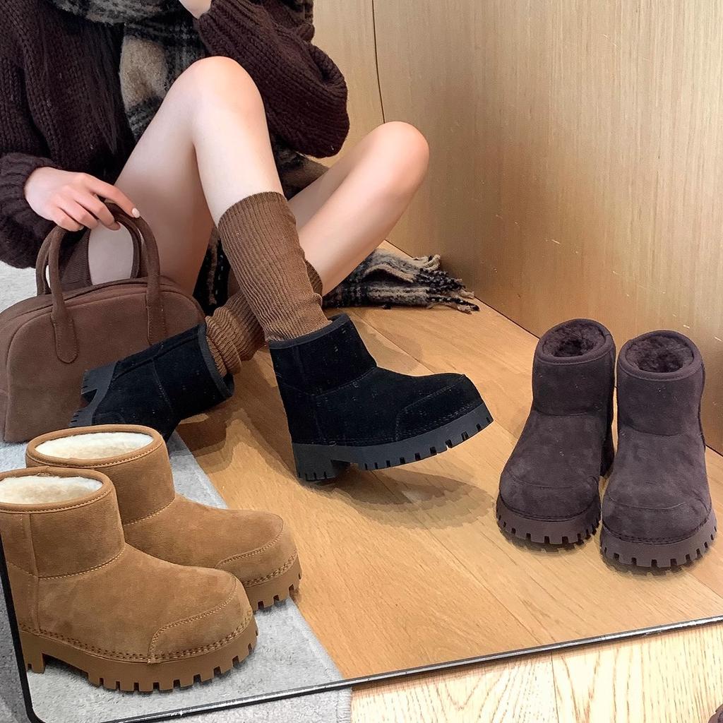Gu Yunshu Snow boots thick-soled big head ugly cute women's short boots thickened short cotton shoes piled one pedal fluffy boots tide
