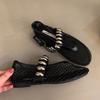 Wiosenne nowe płaskie buty okrągła głowa płytkie usta siateczka oddychająca metalowa klamra miękka podeszwa antypoślizgowe pojedyncze buty
