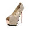 Letnie Damskie Czółenka Błyszczące Peep Toe Szpilki Wysokie Obcasy Seksowne Sandały na Platformie Impreza Klub Nocny Pojedyncze Buty