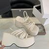 Silver wedge-shaped sandals for women's platform shoes with black straps, high heels, thick heels, sandals for summer